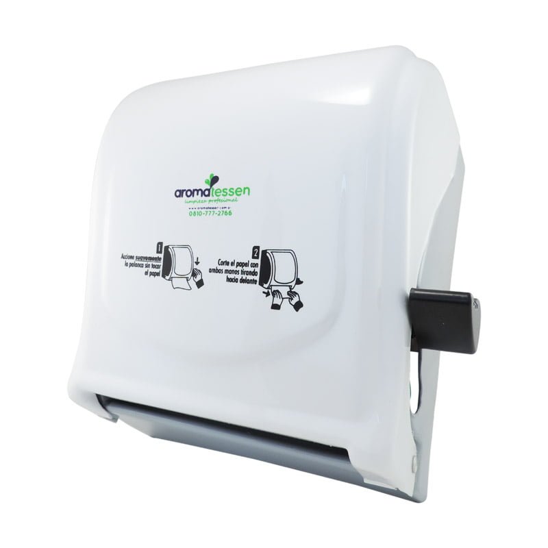 Dispenser de toalla en rollo con mecanismo con palanca.