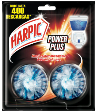 Bloque para la mochila del  inodoro marca Harpic.