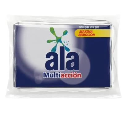 Jabón de lavar puro marca Ala. Con el doble de agentes de blancura.