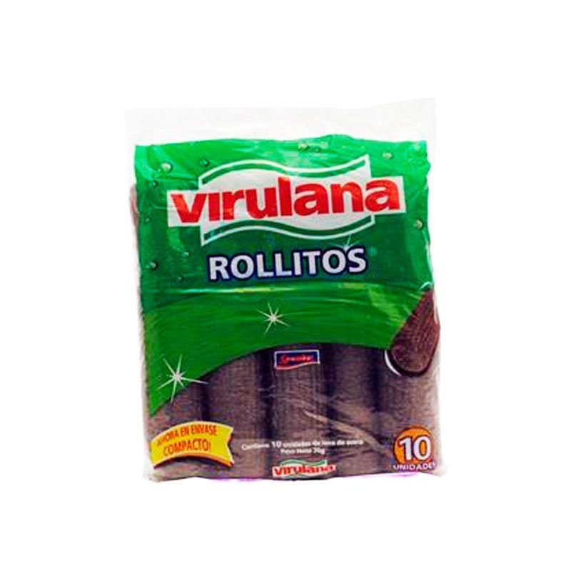 LANA DE ACERO VIRULANA X 10 ROLLITOS 70G