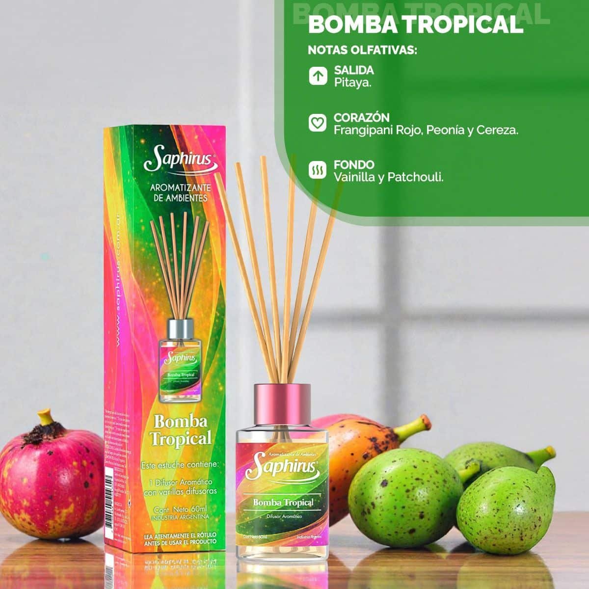 MINI DIFUSOR AROMATICO BOMBA TROPICAL 60ML SAPHIRUS