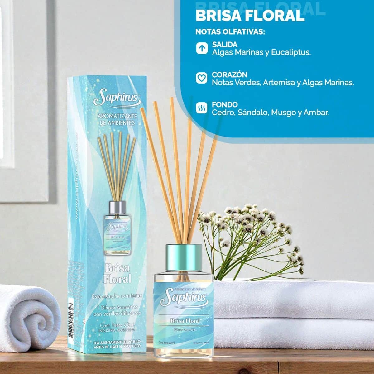 MINI DIFUSOR AROMATICO BRISA FLORAL 60ML SAPHIRUS