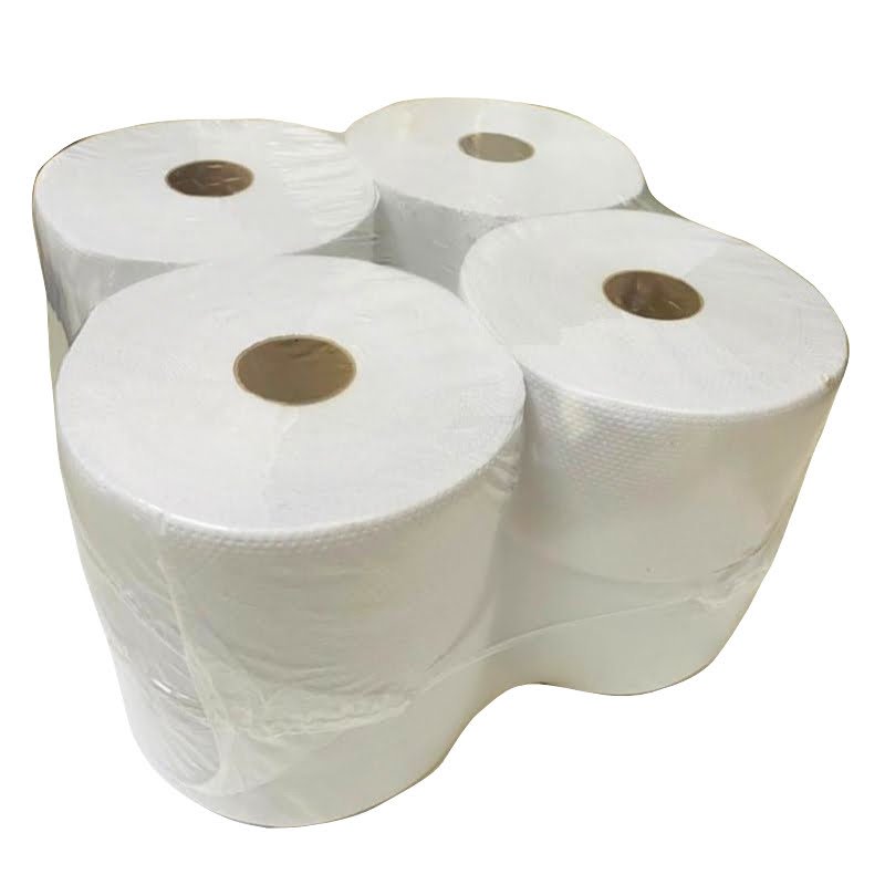 Papel higiénico Jumbo color blanco.
