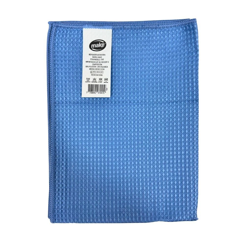 Repasador de microfibra. Marca: MAKE. Repasa cualquier superficie y objetos de la cocina, Super absorbente y no raya . Color: Varios. Medida: 40×55 cm.